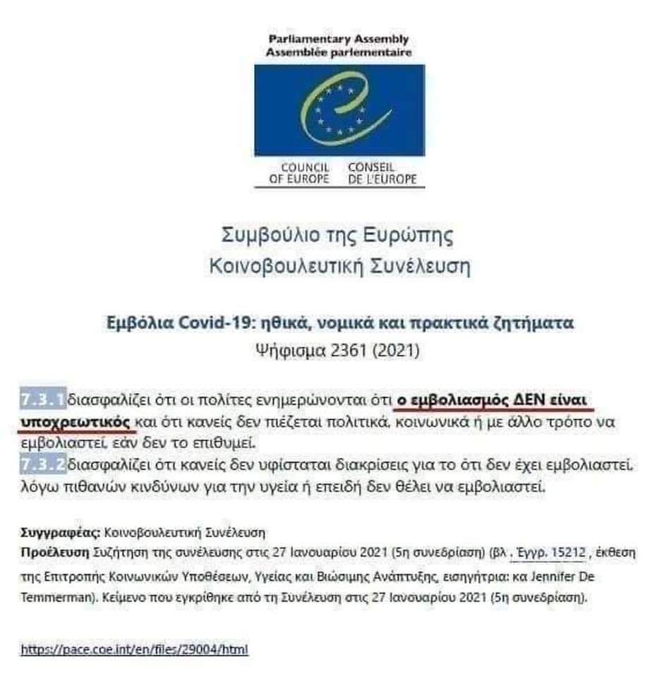 eiserx 1195a, 17-6-21_συν 1-Συμβούλιο της Ευρώπης_Οχι υποχρεωτικός εμβολιασμός