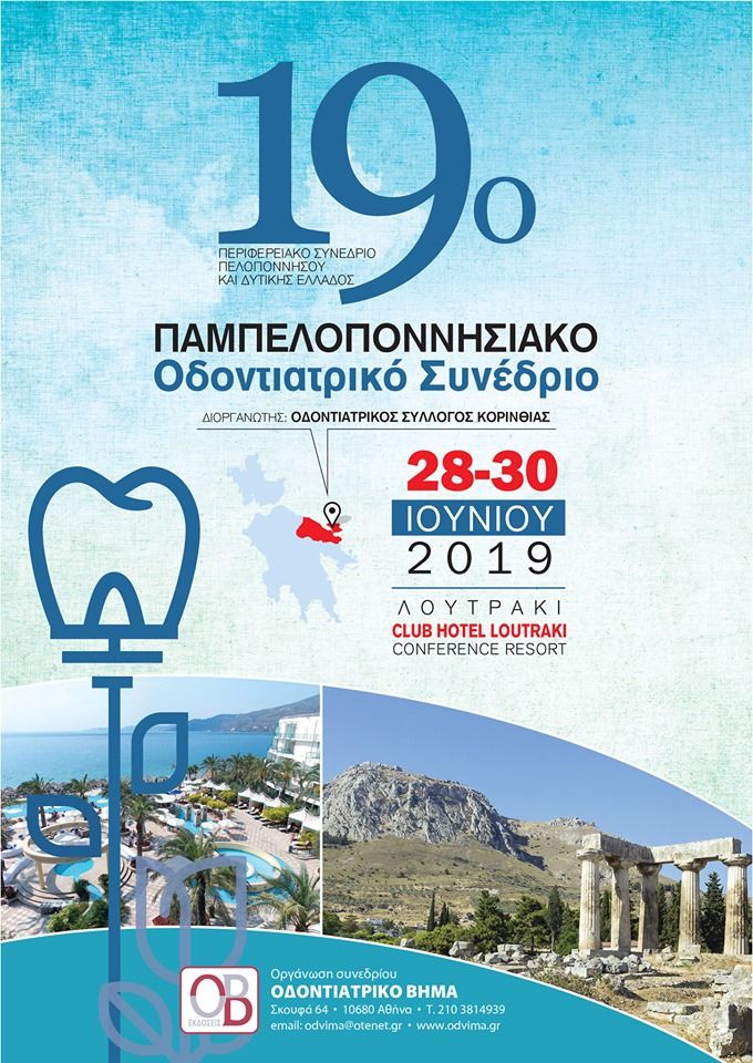 19ο Παμπελοποννησιακό Οδοντιατρικό Συνέδριο, 28-30 Ιουνίου 2019, ξενοδοχείο Club Hotel Loutraki