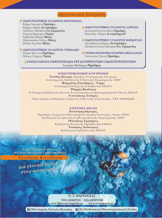 25η Πανθεσσαλική Οδοντοστοματολογική Συνόδος, 27-29 Μαΐου 2016, Βόλος, ξενοδοχείο Domotel Xenia