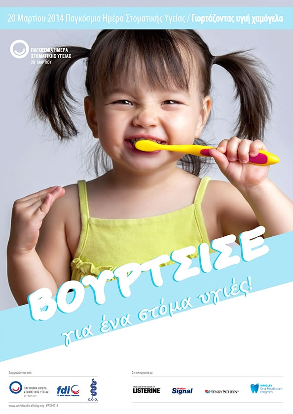 Η 20η Μαρτίου έχει οριστεί από την Παγκόσμια Οδοντιατρική Ομοσπονδία(F.D.I.) ως ημέρα εορτασμού της Παγκόσμιας Ημέρας Στοματικής Υγείας. Ο φετινός εορτασμός της Παγκόσμιας ημέρας Στοματικής Υγείας τιτλοφορείται “Γιορτάζοντας Υγιή Χαμόγελα”