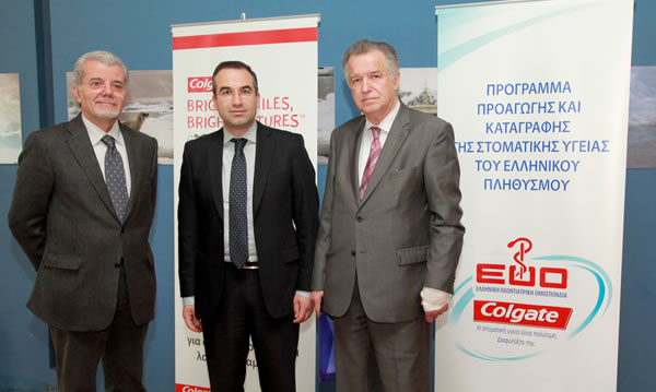 Οι κκ Ουλής, Επιστημονικός Υπεύθυνος, Καραμπέτσος, Διευθυντής Marketing Colgate, και Κατσίκης, Πρόεδρος EOO