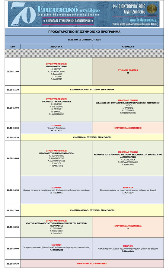 Επετειακό Συνέδριο της Εταιρείας Οδοντοστοματολογικής Ερεύνης, 14-15 Οκτωβρίου 2016, Αίγλη Ζαππείου